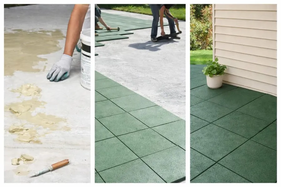 Детальну покрокову інструкцію з усіма нюансами можна знайти в окремій статті про монтаж гумової плитки на бетонну основу.