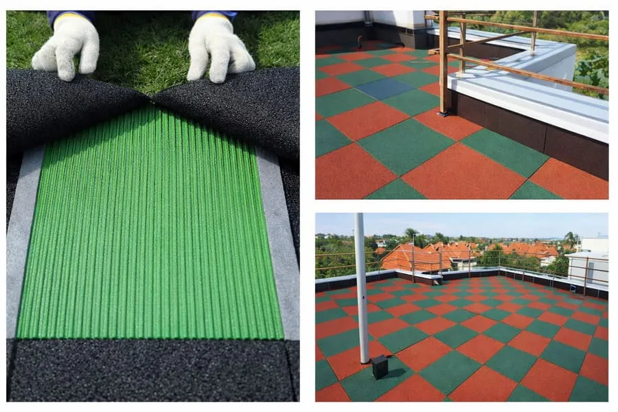 4. Оскільки гумова плитка пропускає вологу, при її укладанні на тверду основу слід забезпечити ухил 1–2% для відведення води або облаштувати дренажну систему.