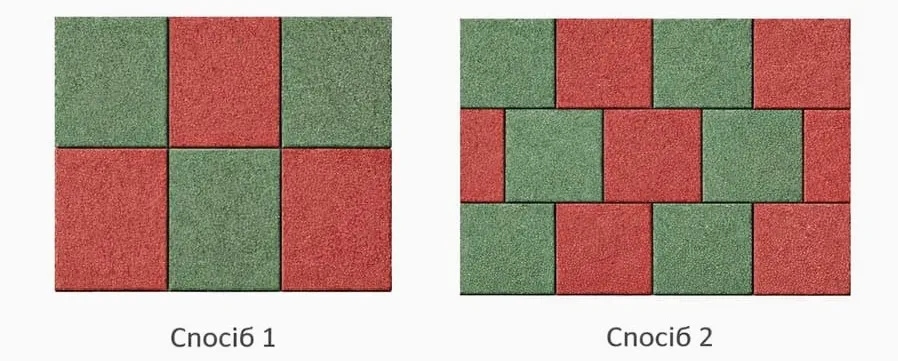 Монтаж гумових плиток від компанії Creative Play можна виконати двома методами: