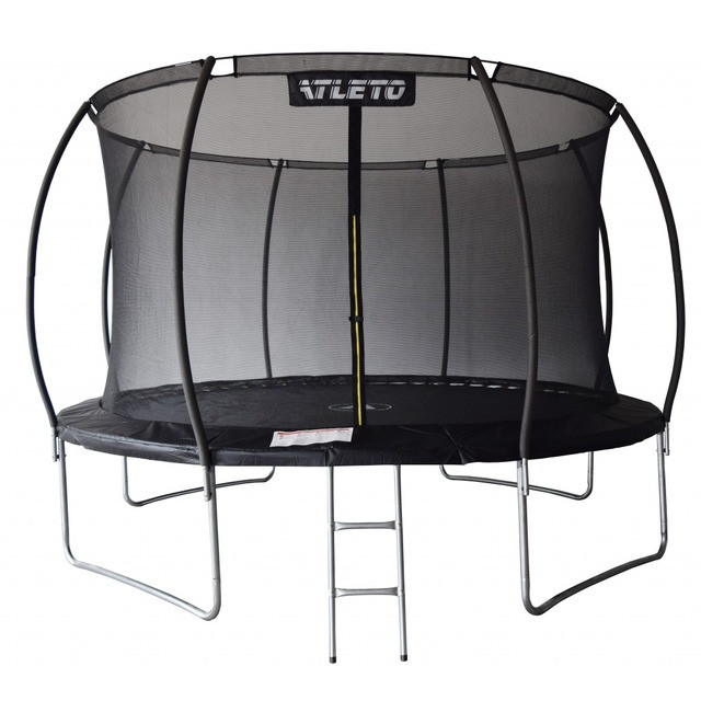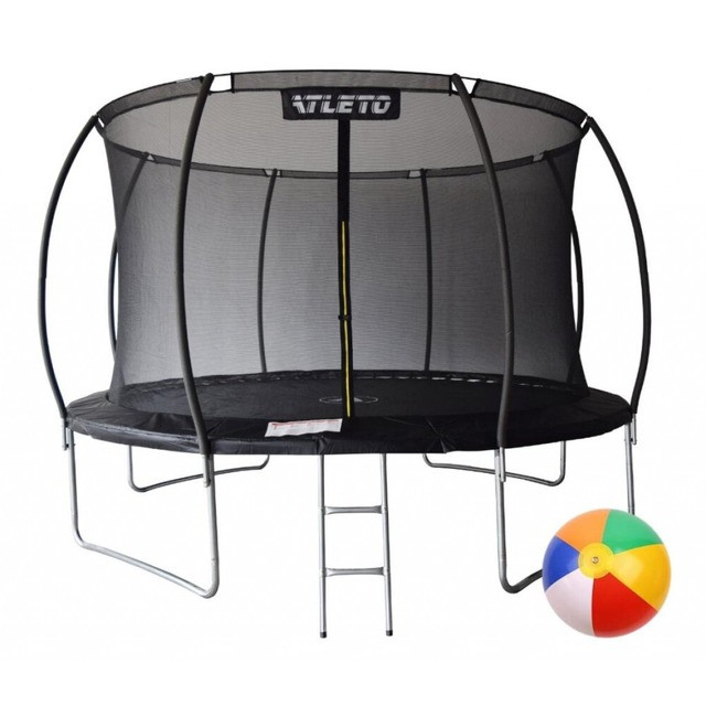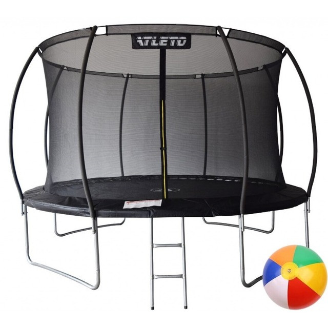 Батут Atleto 374 см з внутрішньою сіткою, що виробляється з високоякісних матеріалів, що забезпечує його довгий термін служби. Батут є безпечним для користувача, так як конструкція закріплена таким чином, щоб захистити від травми. Батути створені згідно зі стандартами безпеки, встановленими в ЄС.
