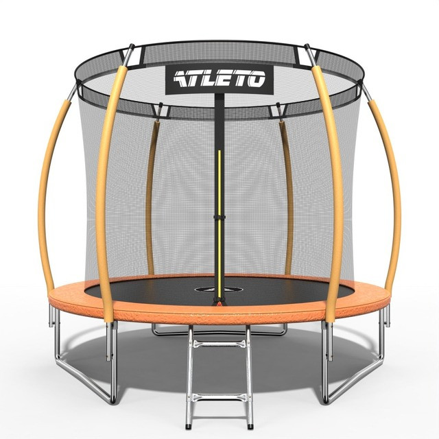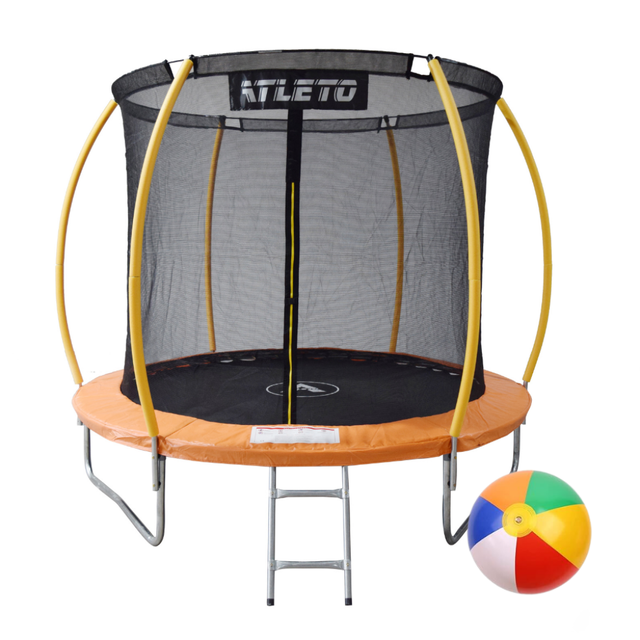 Батут дитячий з внутрішньою сіткою та драбинкою 252 см Atleto оранжевий + подарунок м'ячик та рукавиці