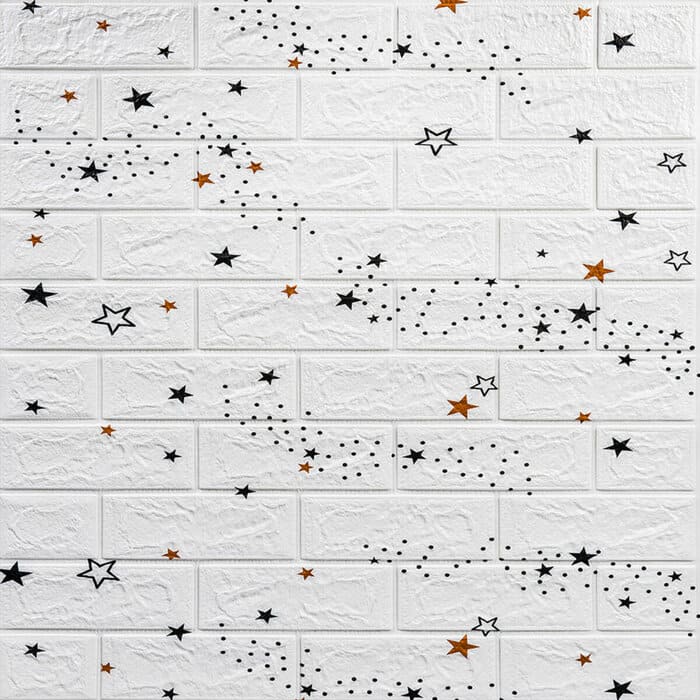 Декоративна самоклеюча 3D панель під Білий цегла зірки – це відмінне декоративне покриття, призначене для облицювання стін. Така панель виготовлена із спіненого поліпропілену, завдяки чому не тільки легка, але й доволі міцна. Дана 3Д панель має надзвичайно тривалий термін експлуатації, вона служитиме вам більше 20 років. Тому купити декоративну 3Д панель самоклеючу справді вигідно, як з фінансового боку, так і з погляду естетики в будинку.
