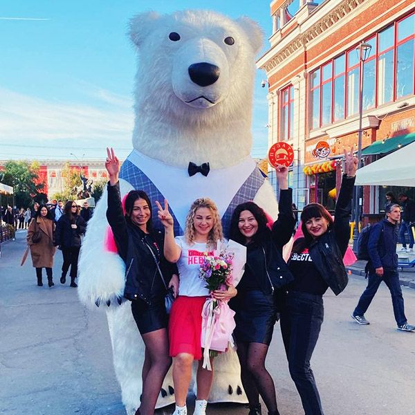 Послуги привітання білого ведмедика на свято дедалі стають все популярніші. Цей не дивно, адже формат такої розваги вписується абсолютно для будь-якої події. Дитячі дні народження, дорослі свята чи ювілеї, корпоративи, весілля, вечірки, офіційні відкриття, інші заходи. Саме так, великий ведмедик кумедний, ніжний та м'який. І діти й дорослі та навіть літні люди залюбки будуть обніматися з такою горою ніжності та зроблять фото на пам'ять. А ще білий ведмедик танцює, грає в ігри, забавляє своїми трюками та дарує всім оточуючим позитив та заряд енергії.