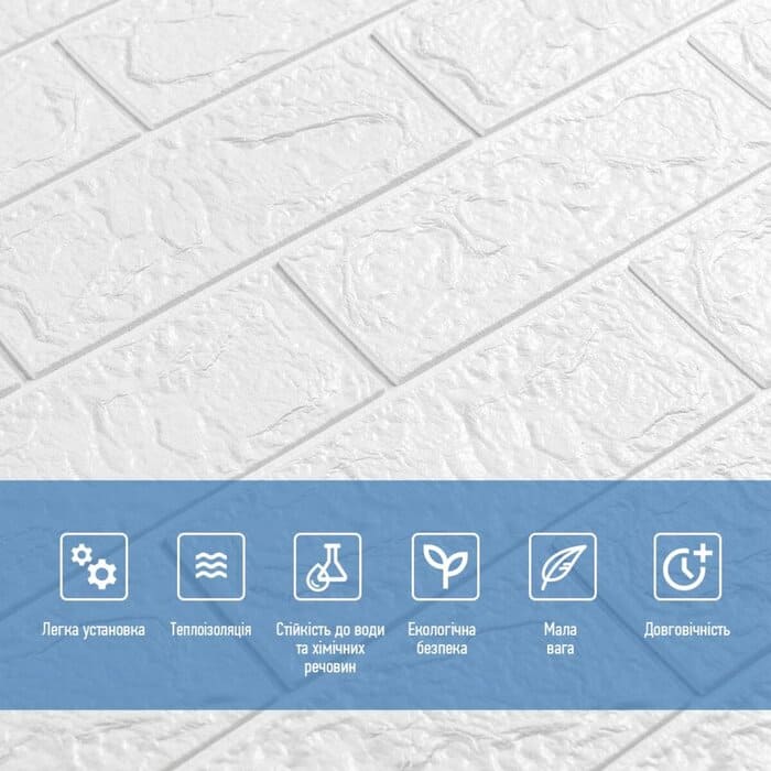 - гнучкість і міцність: самоклеюча 3d панель може легко адаптуватися під різні поверхні (часом навіть не досконало й рівні), зберігаючи при цьому неабияку міцність;