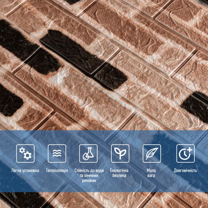 • Швидке та легке встановлення: монтаж самоклеючих 3Д панелей справді легкий. Вони без проблем кріпляться на стіну і не потребують додаткових матеріалів в процесі установки. Крім того, таке декоративне покриття для стін можна застосовувати навіть на не ідеально рівних поверхнях.