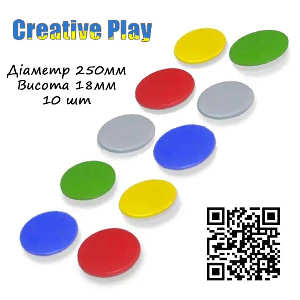 Компанія-виробник "Creative Play" пропонує скористатись чудовою нагодою купити такий спортивний інвентар для своїх дітей за найвигіднішою ціною. Наші диски виготовлені із шліфованої фанери, пофарбованої безпечною акриловою фарбою. У набір входить 10 дисків.
