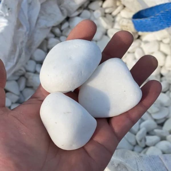 Галька біла Thassos 3-6 см (Греція) - ідеальний варіант для оздоблення різних елементів декору. Такий камінь стане відмінним рішенням для створення рівної та приємної ходьби по поверхні, адже галькою можна викласти будь-яку доріжку чи стежку. Крім того, такий матеріал чудово підходить і для створення декоративних композицій із каменю, як, наприклад, річкове ліжко, суха стіна, альпінарій, водоспад і навіть фонтан. Також саме гальку часто використовують у ставках для облицьовування берегів чи дна водоймища. Інтерпретацій її застосування дійсно дуже багато! Купити Гальку біла Thassos фракції 3-6 см грецького походження і пропонує наша компанія.