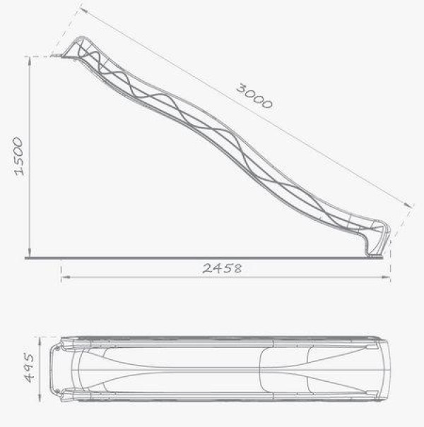 Гірка довжиною 2,2 м і шириною 50 см виготовлена з міцного пластику, стійкого до температурних перепадів (-50…+50 °C) і сонячного вигоряння.