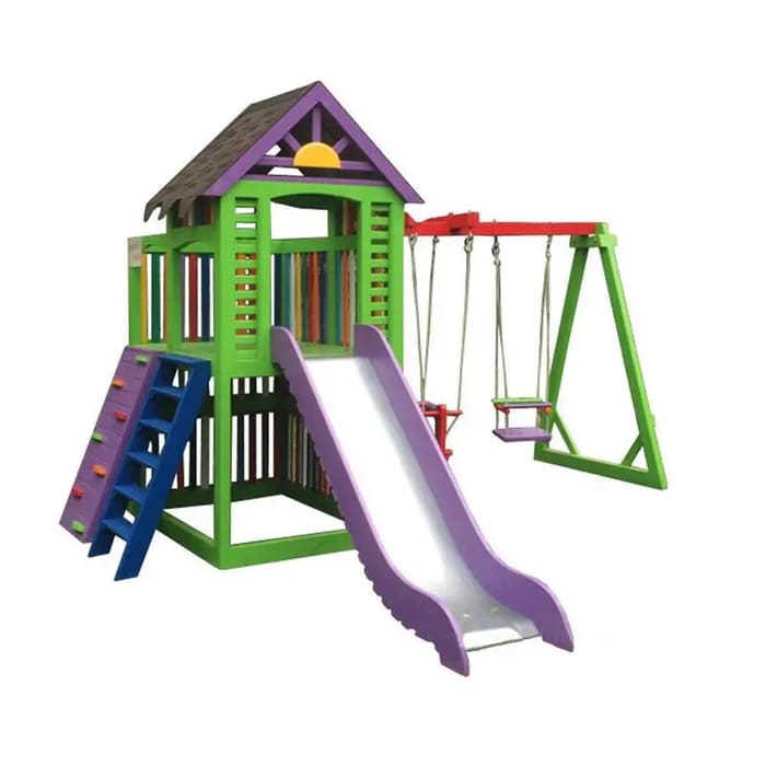 Колірне виконання дитячого майданчика залишається на розсуд виробника. У разі, якщо ви бажаєте пофарбувати комплекс у конкретний колір (чи кілька кольорів, або з певною подетальною чергою), то обов'язковим є письмове оформлення Специфікації до замовлення з вашим особистим візуванням документа. Крім того, зазначаємо, що колір виробу на фотографіях може відрізнятися від фактичного кольору товару, що пов'язано зі спотворенням кольорів монітором, налаштуваннями фотоапаратури та іншими факторами. Також може бути два варіанти встановлення гірки, тому від цього розміри змінні.