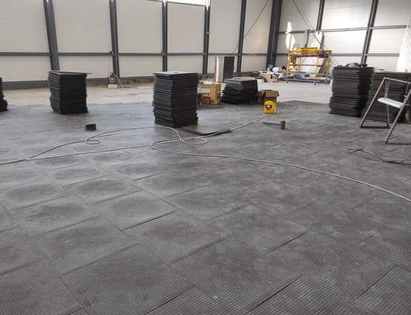 Лицьова поверхня плити прикрашена дрібним тисненням, яке забезпечує щільне зчеплення з поверхнею і зменшує вібрації під час експлуатації, що особливо важливо для приміщень з механізованим обладнанням.