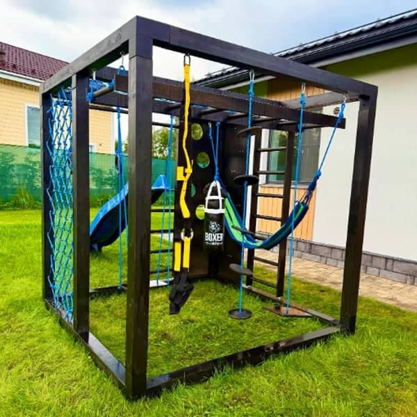 ▪️Можливість індивідуального налаштування комплектації під конкретний майданчик: можна обрати потрібні елементи (канати, сітки, рукоходи, драбини, кільця тощо) та адаптувати комплекс під вік дітей і доступну площу.