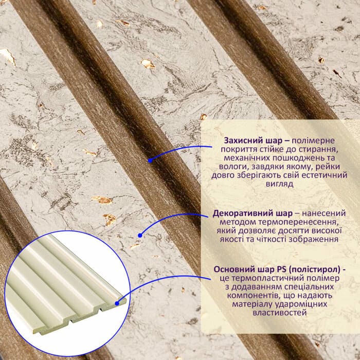 Декоративна PS рейка складається із трьох шарів, кожен з яких має надважливе значення.