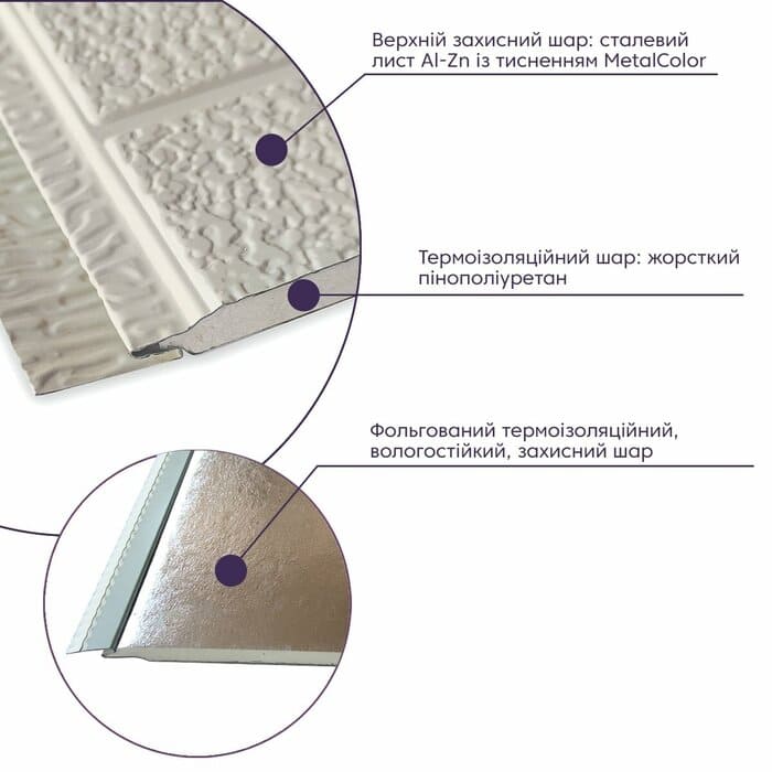 - матеріал - металевий фасад з пінополіуретану;