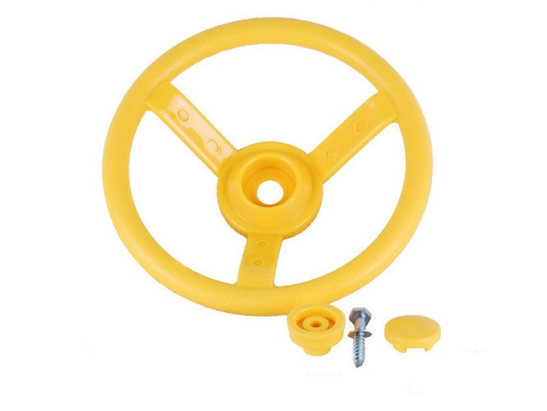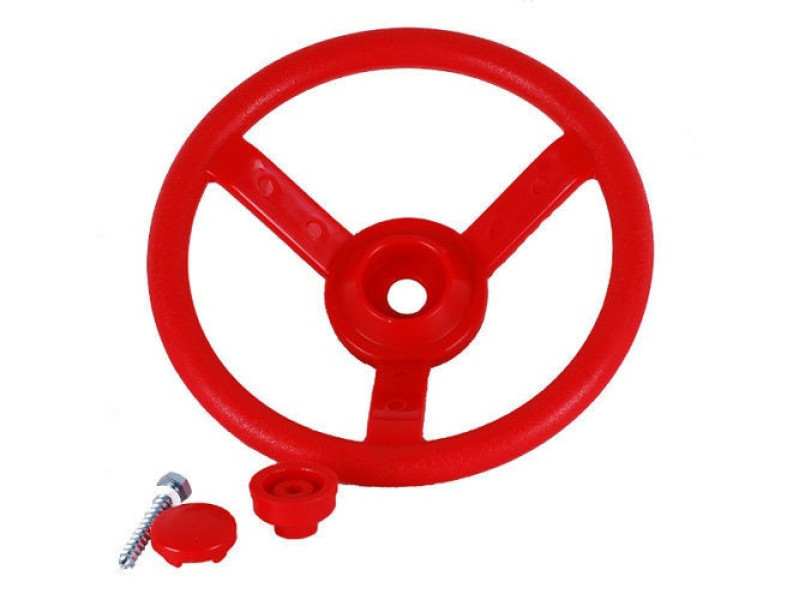 Пластикове кермо Ø33 см для дитячого майданчика доступне в червоному, жовтому, зеленому та синьому кольорах, виготовлене з міцного пластику, стійкого до УФ-випромінювання та негоди. У комплект входить монтажний гвинт із шайбою та ковпачком — кермо легко встановлюється та є безпечним для використання як на вулиці, так і в приміщенні.