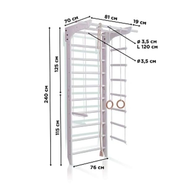 Купити дитячий спортивний куточок "1-Lux 1-240" означає зробити невимовно великий вклад у розвиток своєї дитини. Це насправді ідеальний вибір - адже такий комплекс стане гарним варіантом для тренувань вдома. Тут для цього наявне все: гімнастичні кільця, перекладини, сходи, сітки та мотузки. Конструкція міцна та практична, може втримати навіть найкрупніших діток (максимальне навантаження 130 кг.)