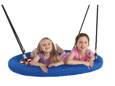 Это качели в виде каната или троса с узлом, диском или небольшой перекладиной внизу. Ребенок держится руками и может сидеть на диске или стоять на нем, раскачиваясь вперед-назад или по кругу.