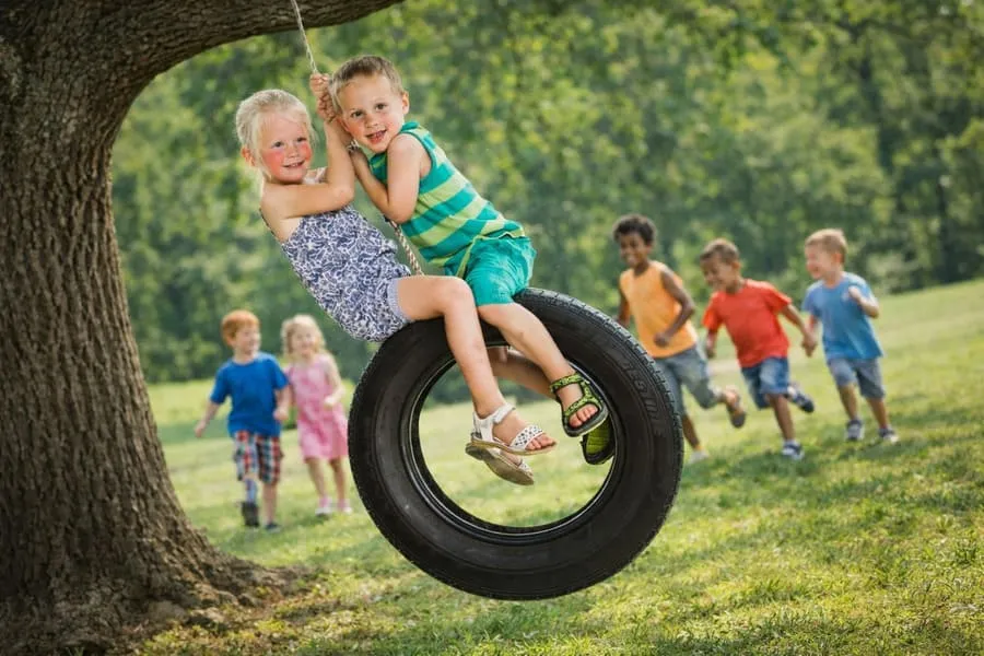Это очень бюджетно, но при всем этом функционально. Сидение – покрышка подвешивается вертикально или горизонтально на канате или цепи. Ребенок может сидеть внутри, на краю или даже стоять в зависимости от конструкции.