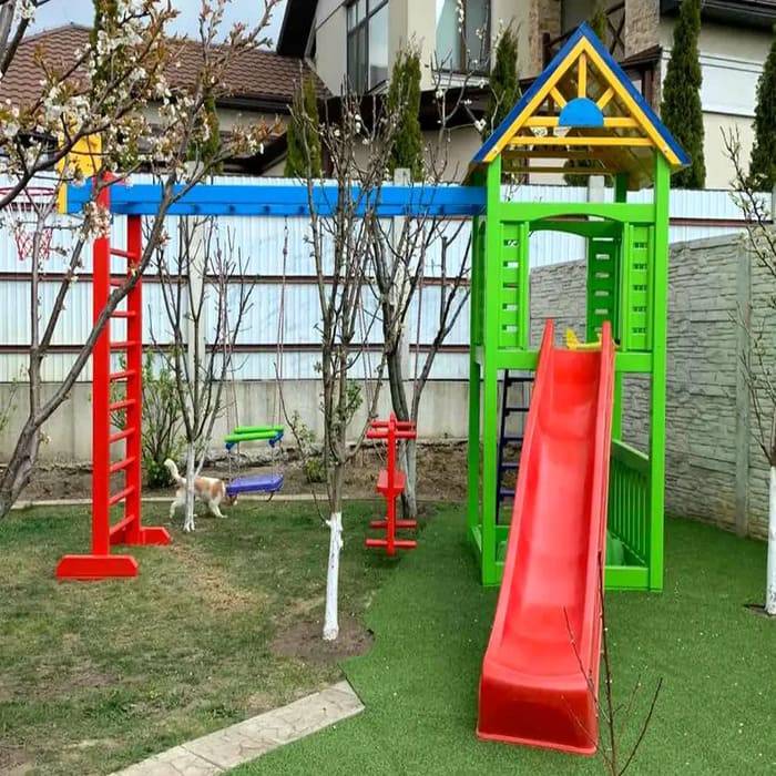 Купить детский игровой комплекс из дерева "Тарзан Мини" не только выгодно, но и практично. Ведь конструкция не имеет острых углов, которые могли бы ранить ребенка, а все детали тщательно шлифуются и полируются, обеспечивая максимально комфортную и безопасную игру малышей на площадке. За краску тоже переживать не следует, мы используем исключительно сертифицированные краски и пропитки, которые абсолютно безопасны для здоровья детей. Поэтому играть на таком игровом комплексе могут даже самые маленькие дети.