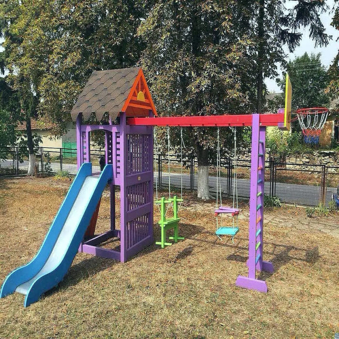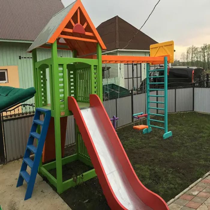 Цветовое исполнение детской площадки остается на усмотрение производителя. В случае, если вы хотите покрасить комплекс в конкретный цвет (или несколько цветов, или с определенной подетальной очередью), то обязательно письменное оформление Спецификации к заказу с вашим личным визированием документа. Кроме того, отмечаем, что цвет изделия на фото может отличаться от фактического цвета товара, что связано с искажением цветов монитором, настройками фотоаппаратуры и другими факторами.