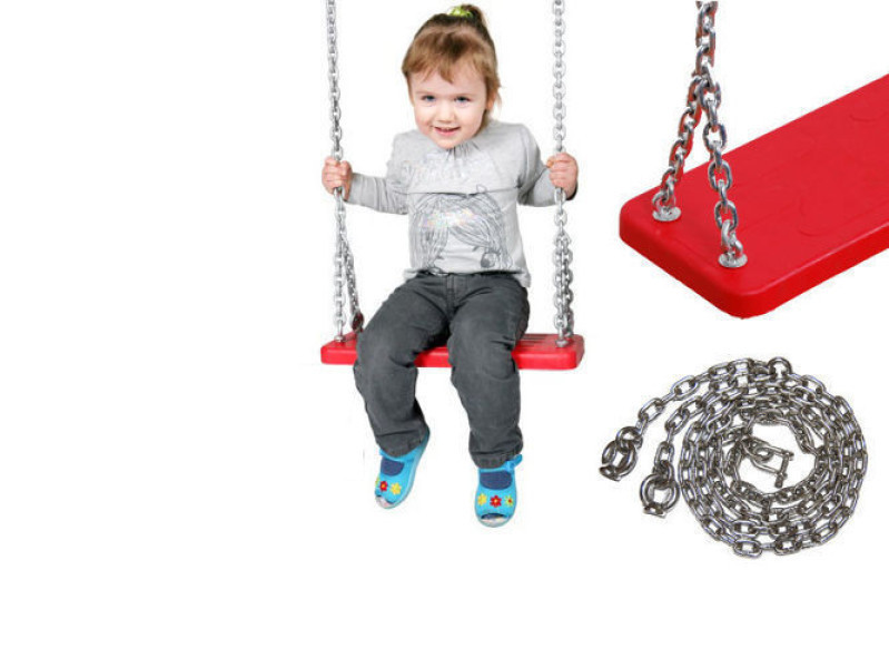 Прочные и безопасные качели с металлическим сиденьем в резиновом покрытии поставляются с цепями длиной 1,8 м (можно укоротить). Она устойчива к любым погодным условиям и доступна в синем, черном и красном цветах. Рекомендуется использовать подвеску с карабином или шарнирным карабином для удобного и надежного монтажа.