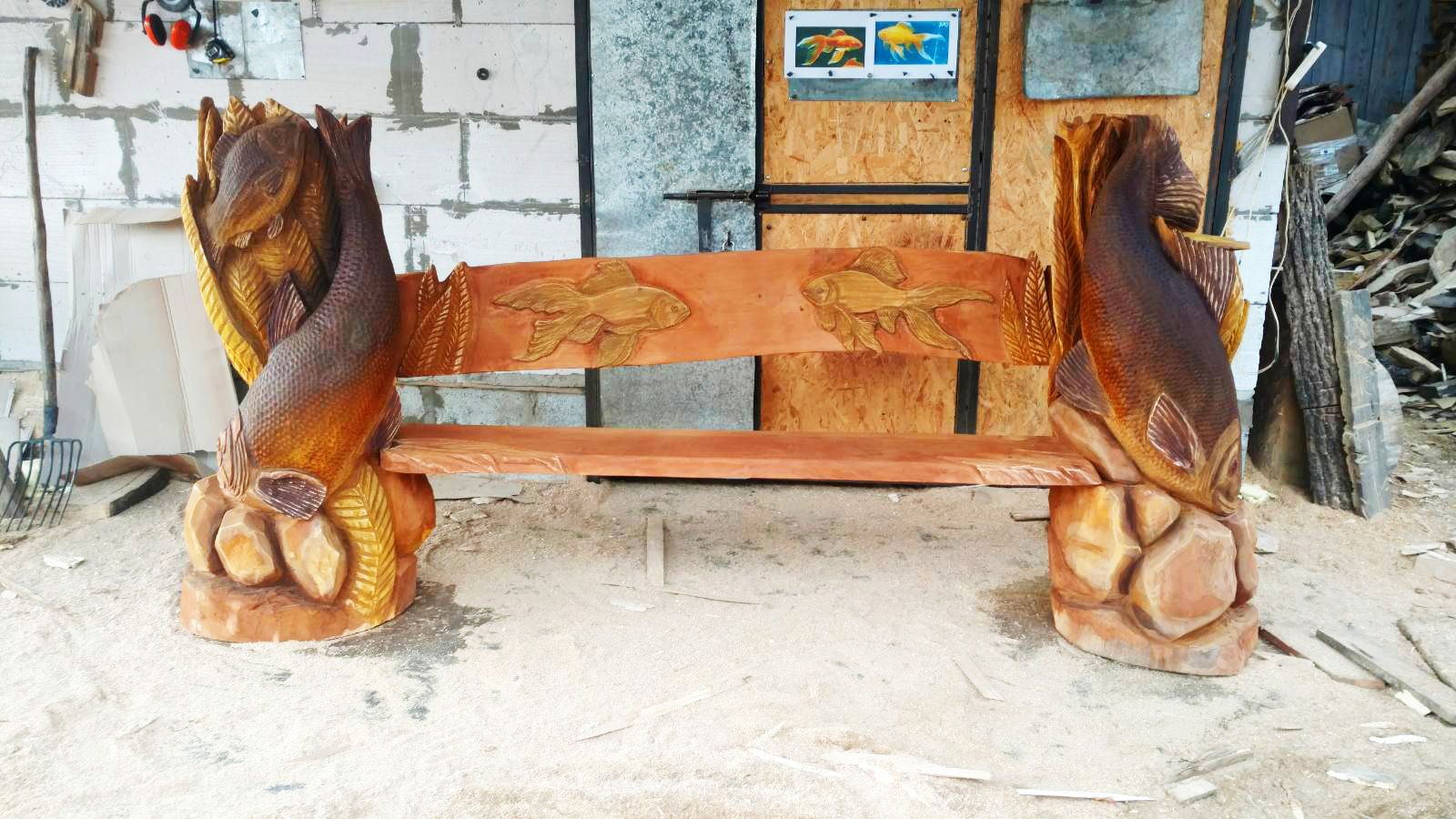 Скамейка с рыбками - Деревянная скульптура