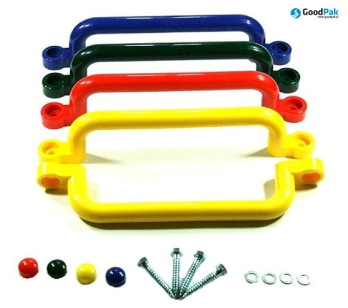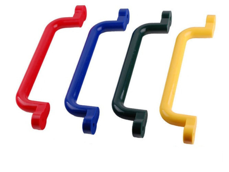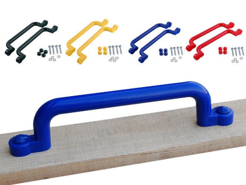 Комплект из двух пластиковых ручек длиной 31 см для детских площадок, доступных в красном, желтом, зеленом и синем цветах. Ручки прочные, устойчивые к атмосферным воздействиям и УФ-лучам, в комплекте со всеми необходимыми крепежами, легко устанавливаются и подходят для различных конструкций.