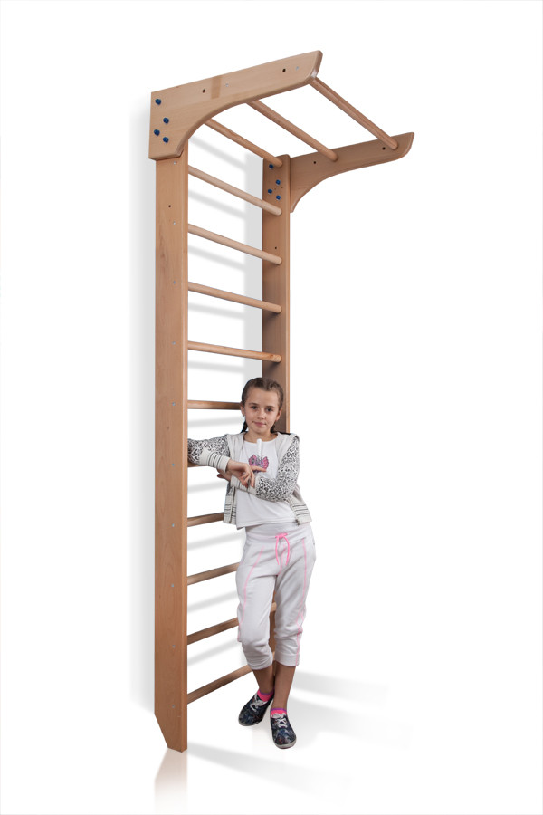 Высота шведской стены "Bambino 1" 240 см. Обычно это идеальный вариант практически для всех домов и квартир. Стенка компактная, легкая и стильная, поэтому впишется в дизайн детской идеально, даже если комната имеет небольшие размеры.