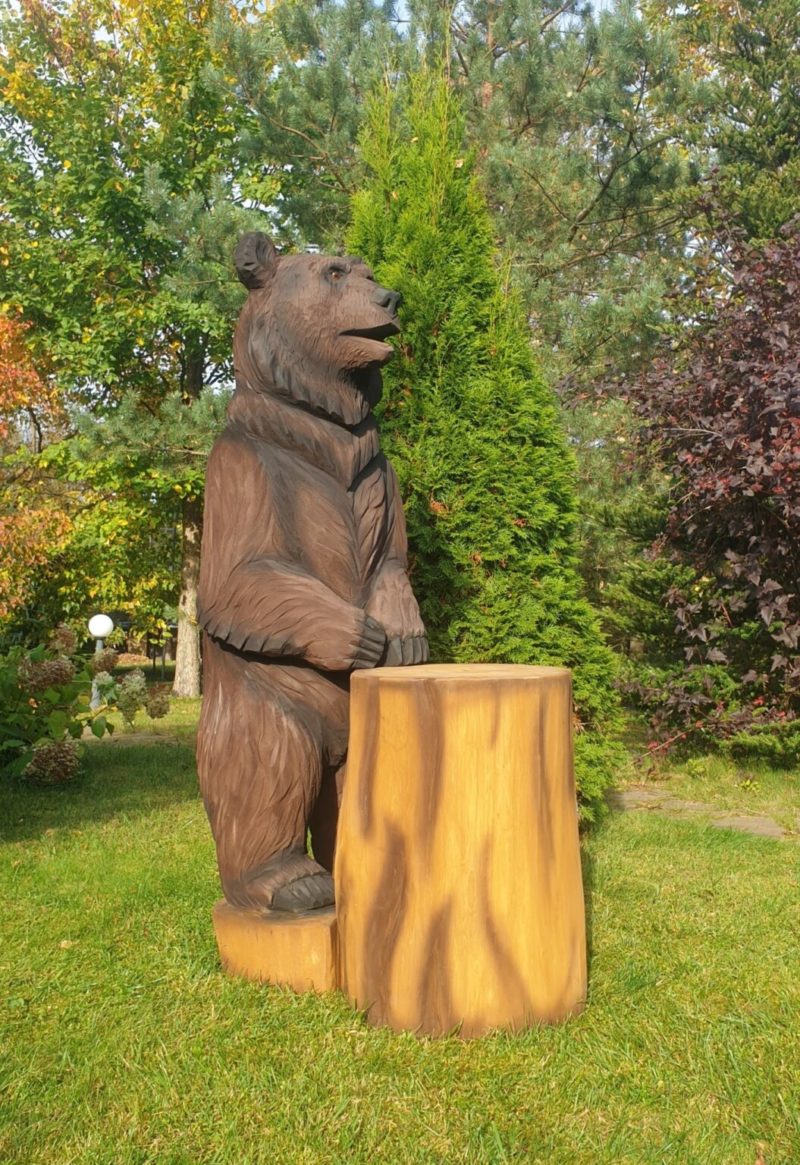 Мишка с пнем. Скульптура из дерева.