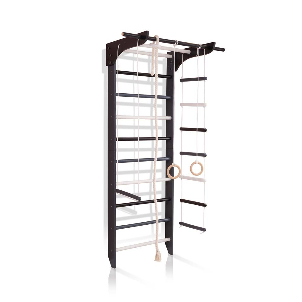 3. Материал. В продаже можно найти такое оборудование, которое производится на основе древесины или металла. Для эксплуатации в уличных условиях рациональным решением станет металлический комплекс. Для использования в помещении следует выбрать аналог с деревянной базой конструкции. Его плюсы – экологичность, легкость и приятные на ощупь поверхности. Кроме того, детские деревянные спортивные уголки создают минимум риска для травм малышей и отлично вписываются в любые интерьеры.