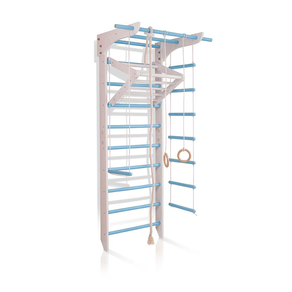 3. Матеріал. У продажу можна знайти таке обладнання, що виготовляється на основі деревини або металу. Для експлуатації у вуличних умовах раціональним рішенням стане комплекс металевий. Для використання в приміщенні варто вибрати аналог із дерев’яною базою конструкції. Його плюси – екологічність, легкість та приємні на дотик поверхні. Крім того, дитячі дерев’яні спортивні куточки створюють мінімум ризику для травм малят і відмінно вписуються в будь-які інтер’єри.
